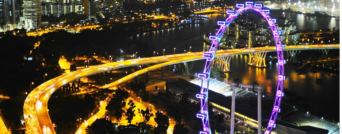 The Singapore Flyer is an expensive 30-minute ride with views towards the Colonial District, CBD, Marina Bay, the high-rise housing landscape to the east and out to the South China Sea. You're better off going on a clear day than at night, if only to avoid the annoying flashing neon lights outside the cabin