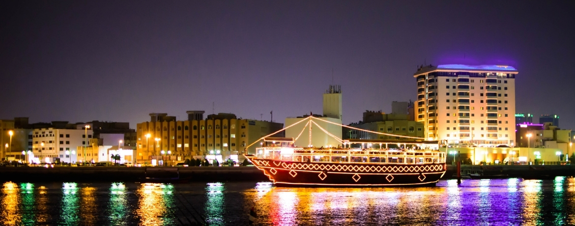 Cruising down Dubai creek is a novel experience, one which you cannot miss when in Dubai. Imagine yourself on having dinner on a Dhow Cruise with the facinating lights of Dubai creek with Music and Tanura Dance show with a sip of your favorite drink and BBQ buffet dinner . Romance for never so easy to find...Cruising down Dubai creek is a novel experience, dinner on a Dhow Cruise with the facinating lights of Dubai creek with music and belly dancing with a sip of your favorite drink and BBQ buffet dinner .